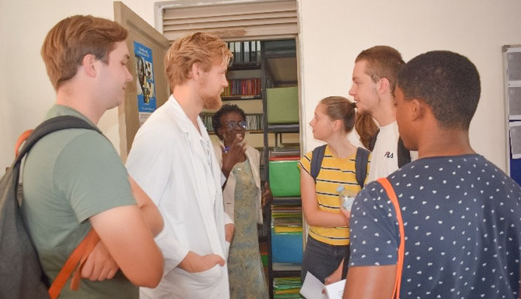 A Registry Assistant(left) at work and on the (right), explaining to visiting medical students how the registry operates.