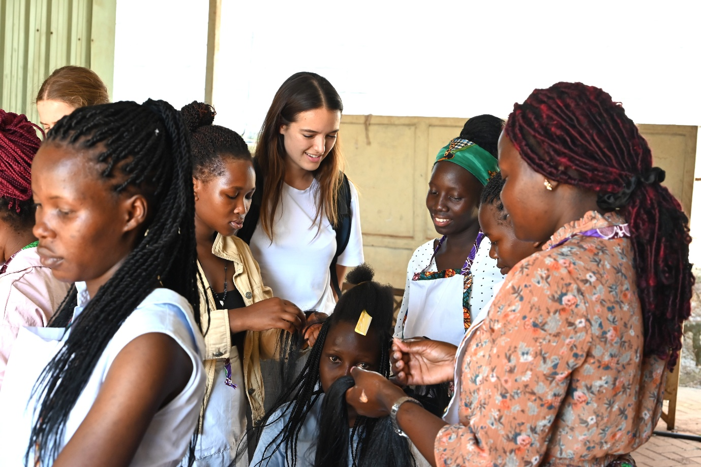 Birungi (extreme right) supports her peers during a learning visit with the Emmaus University- Netherlands Students